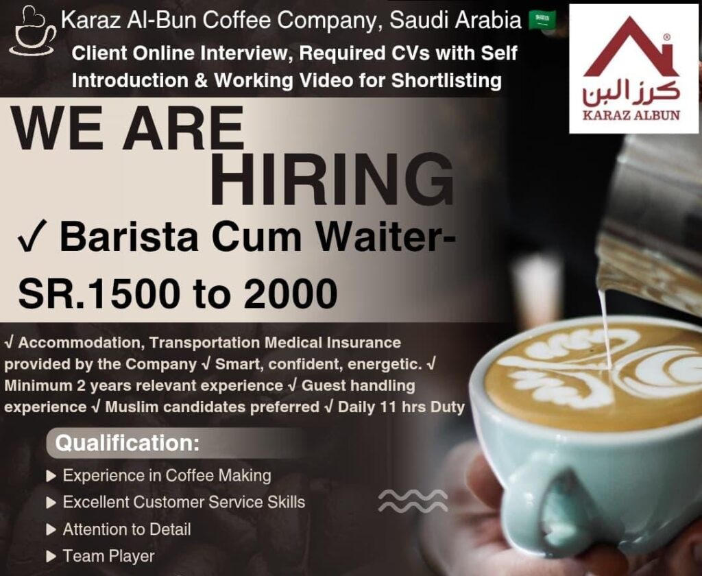 Barista Cum Waiter Wanted For Karaz Al-Bun Coffee Company In Saudi Arabia