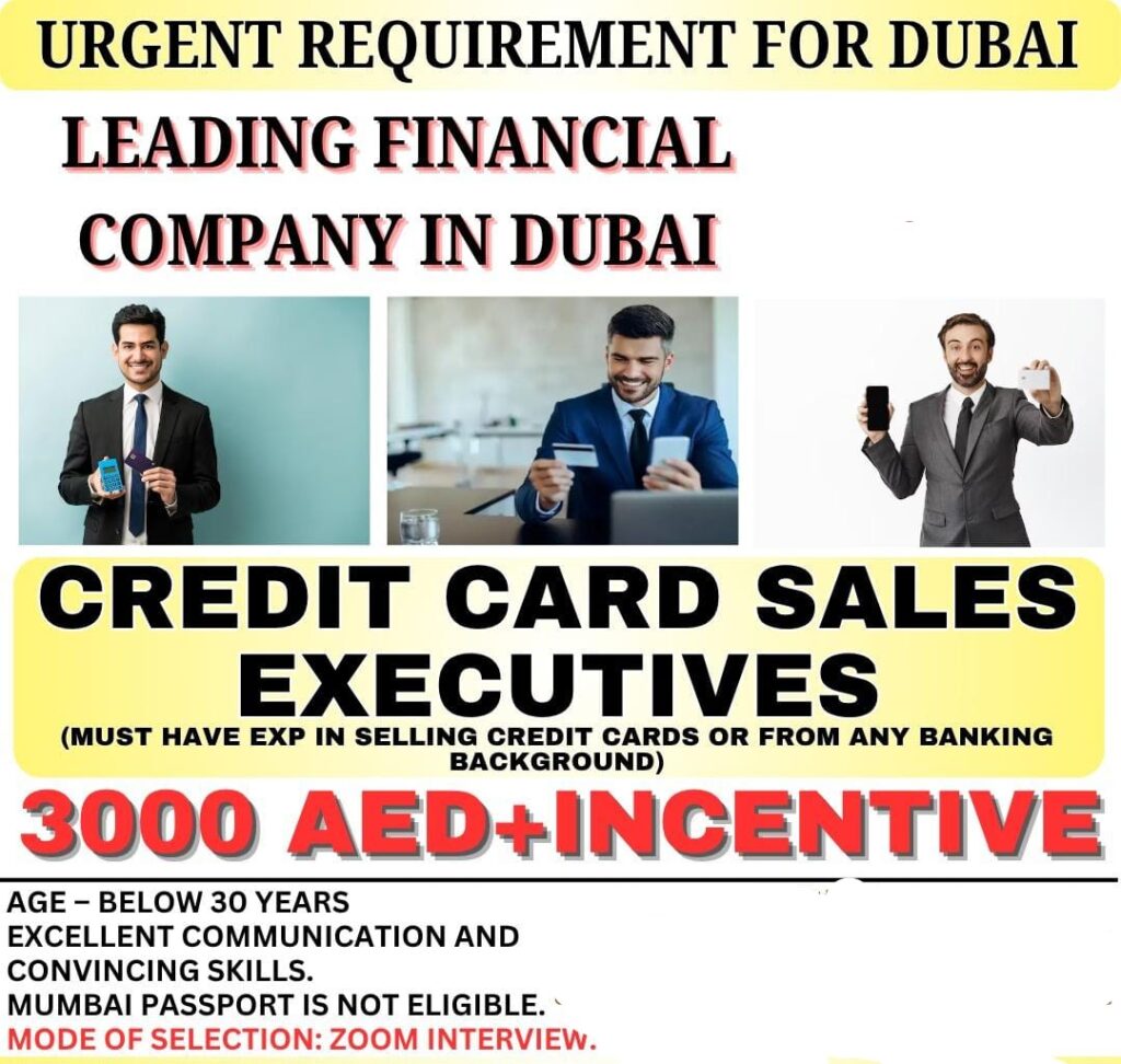 Credit Card Sales Executives Wanted for Leading Financial Company In UAE