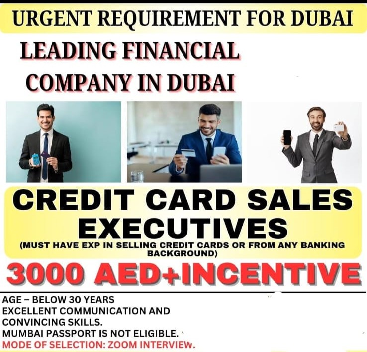 Credit Card Sales Executives Wanted for Leading Financial Company In UAE