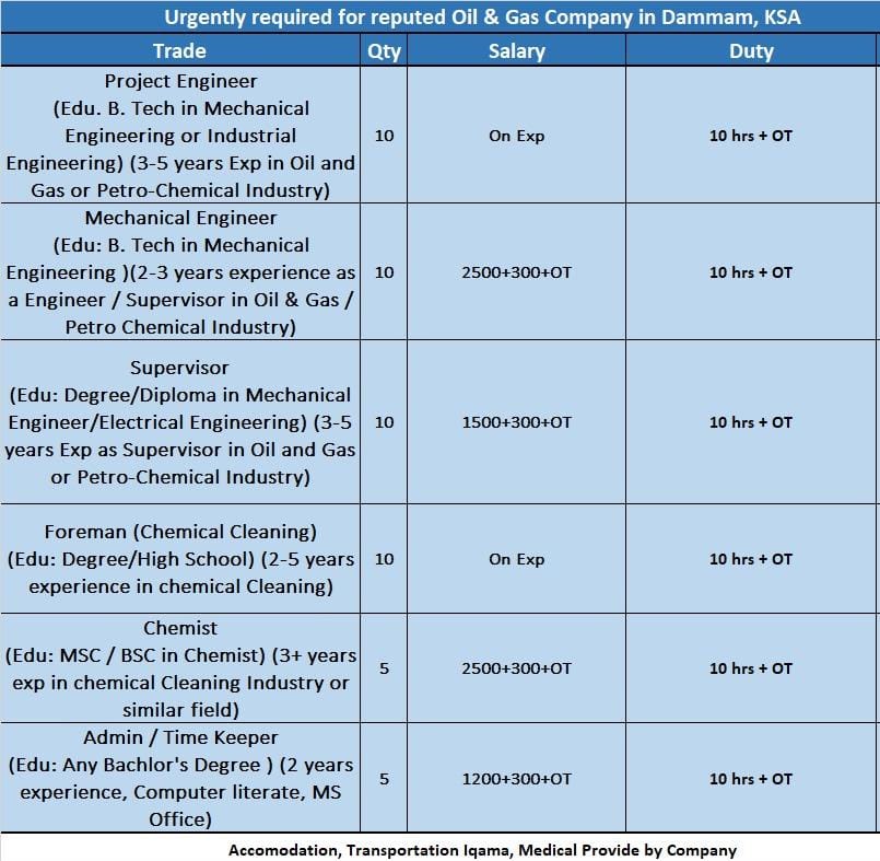 Engineers Wanted for a Leading Oil & Gas Company in Saudi Arabia
