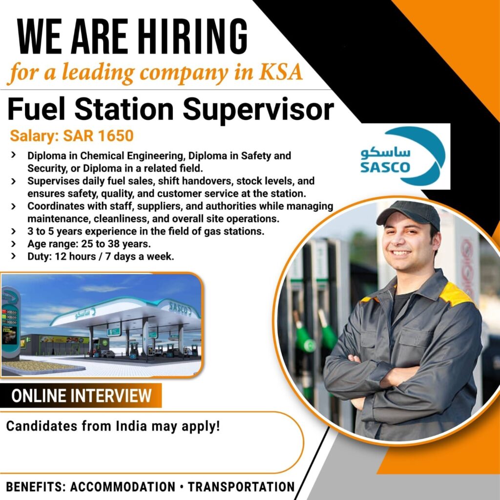Fuel Station Supervisor Wanted For A Leading Company In Saudi Arabia