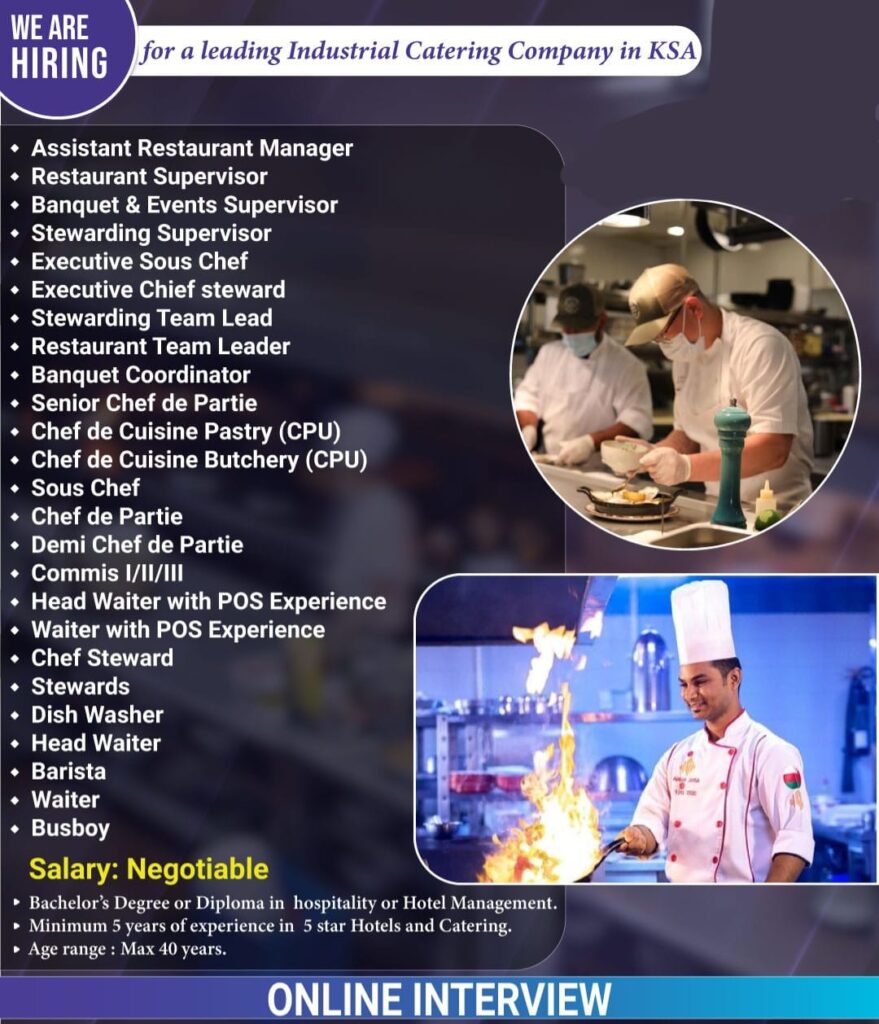 Hiring for a Leading Industrial Catering Company in Saudi Arabia