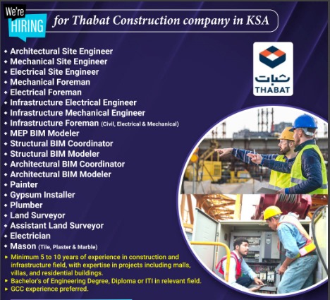 Hiring for Thabat Construction Company in KSA