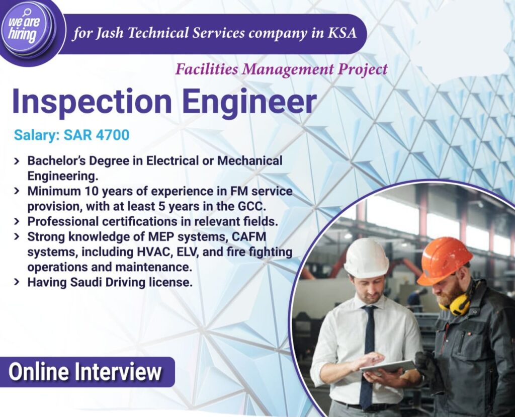 Inspection Engineer Wanted For Jash Technical Services Company in KSA