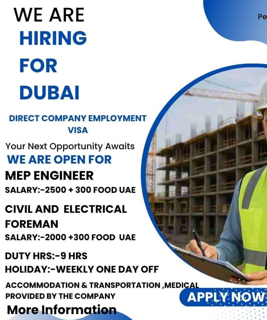 MEP Engineer/Civil and Electrical Foreman Wanted for UAE