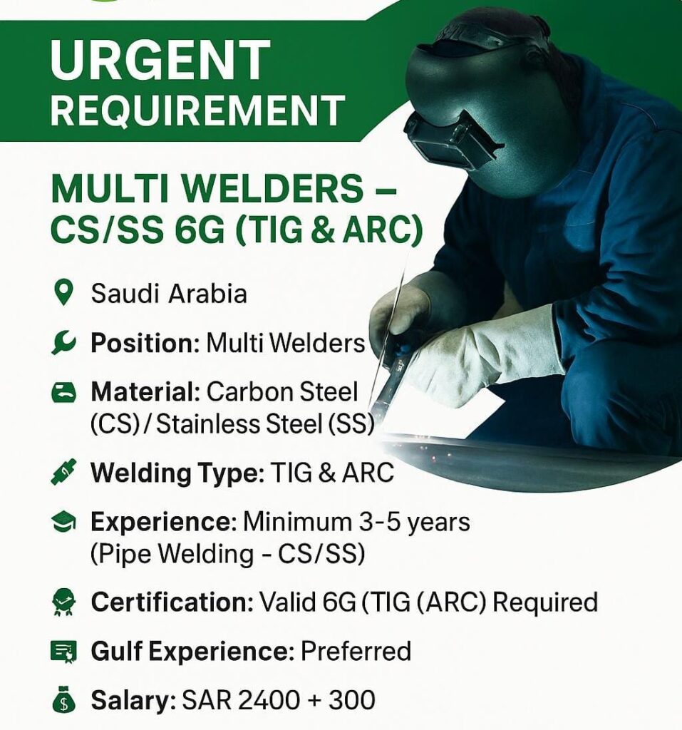 multi Welders Wanted for Saudi Arabia