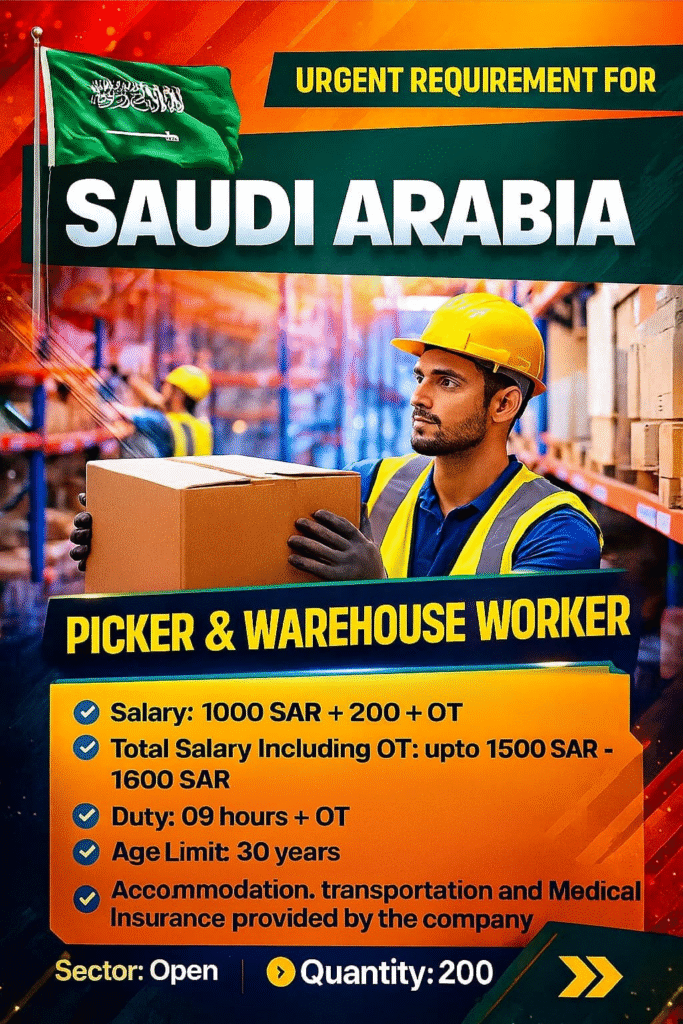 Picker & Warehouse Worker Wanted for Saudi Arabia