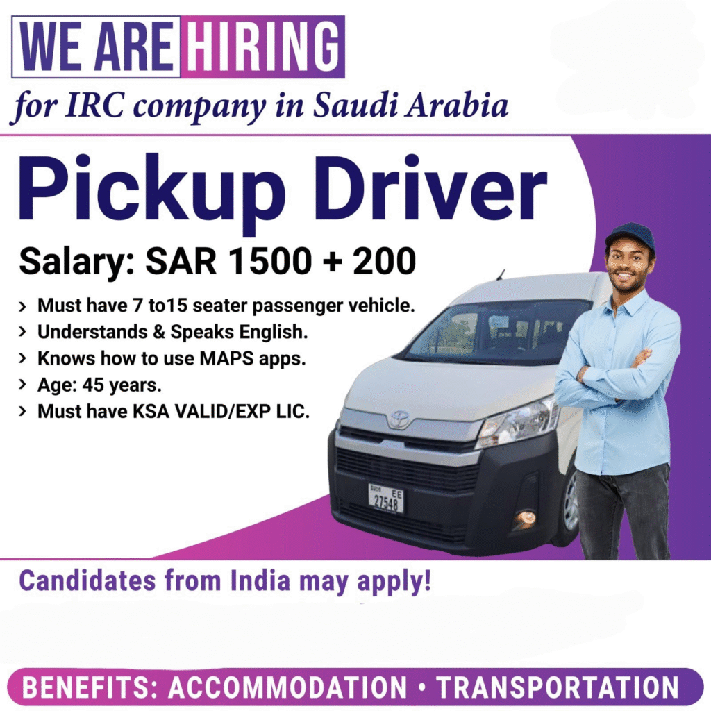 Pickup Driver Wanted for IRC Company In Saudi Arabia
