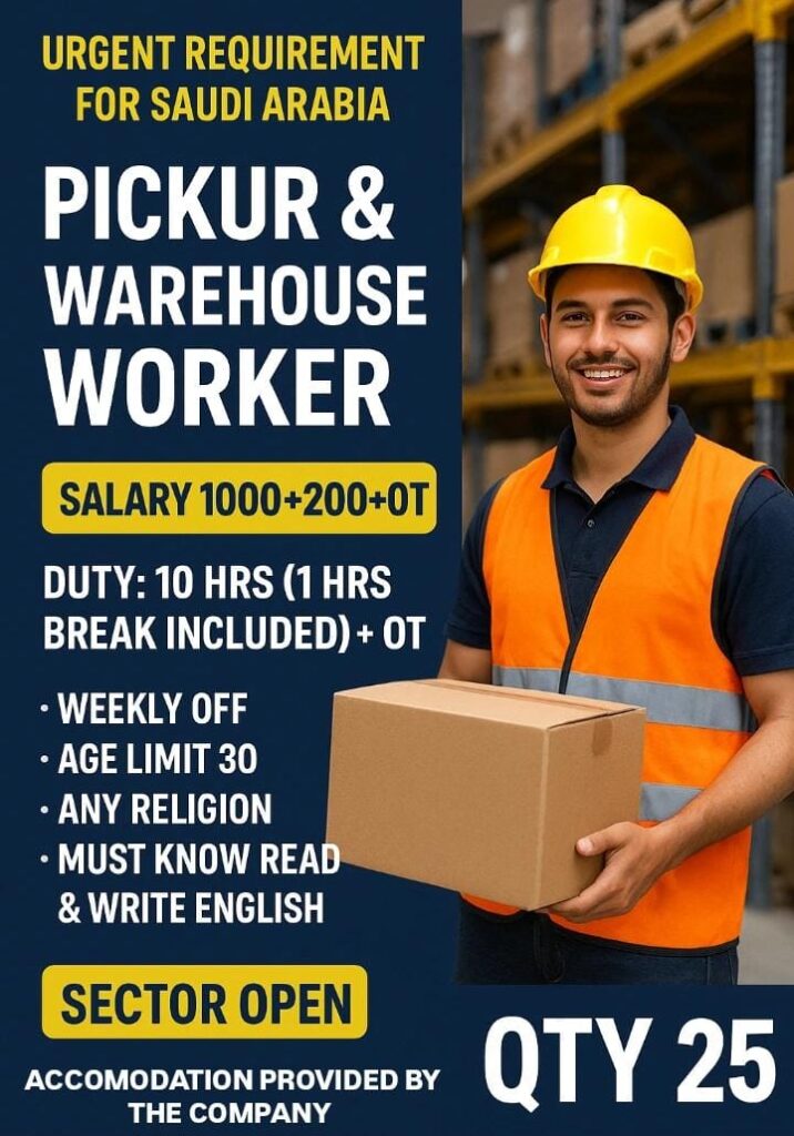 pickur & Warehouse Worker Wanted for Saudi Arabia