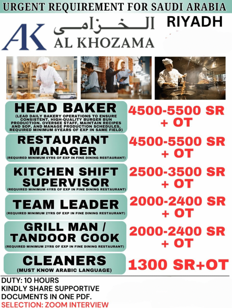Job Description: Candidates currently in India can only apply REQUIREMENT FOR AL KHOZAMA IN SAUDI ARABIA
