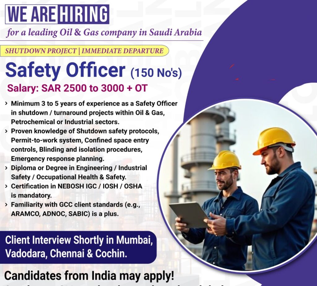 Safety Officers wanted for a leading Oil & Gas Company in Saudi Arabia
