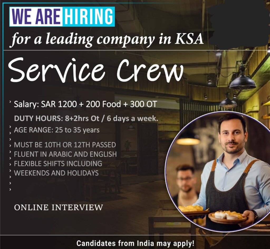 Service Crews wanted for Saudi Arabia