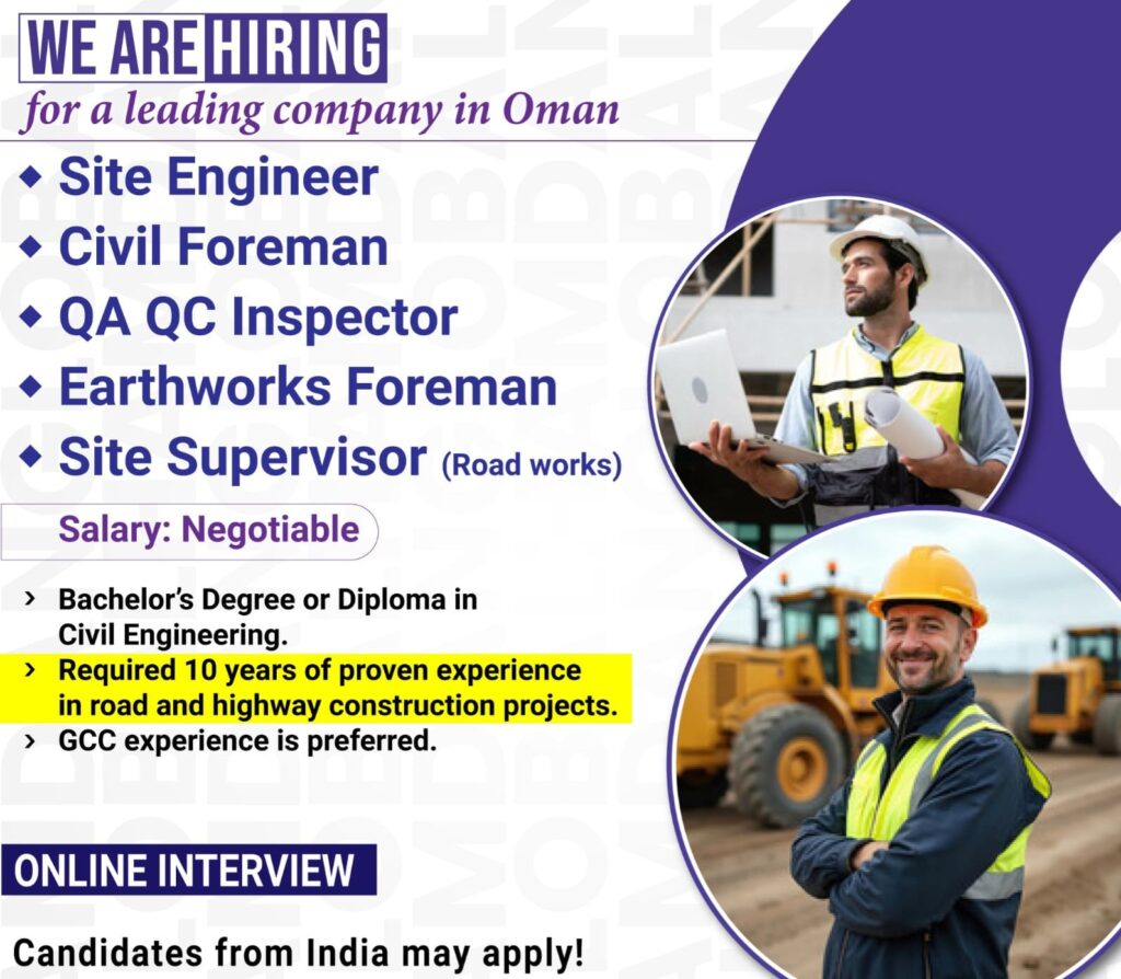 Site engineer/Foreman, Inspector & Earthworks supervisor wanted for saudi arabia
