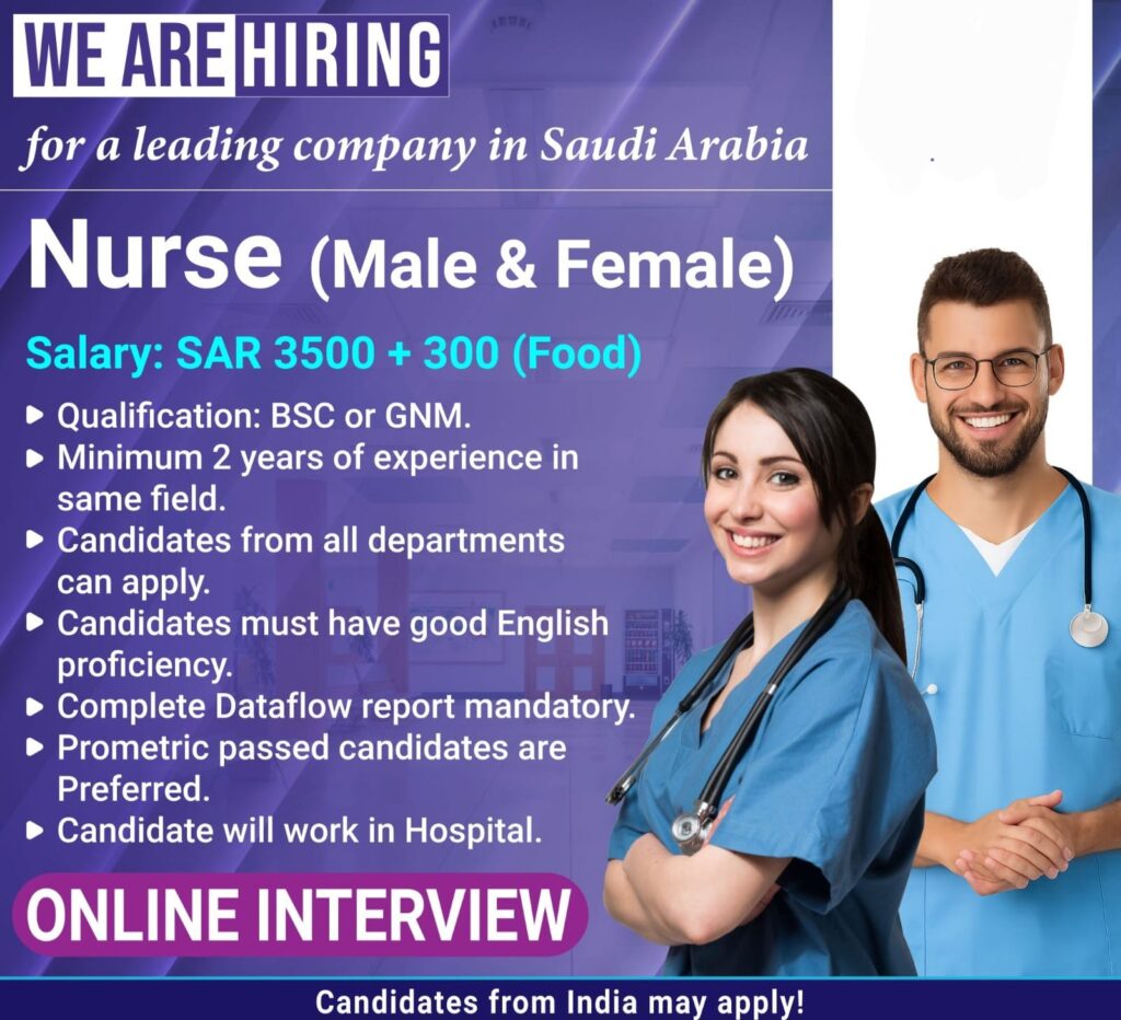Staff Nurses wanted for a leading company in Saudi Arabia.