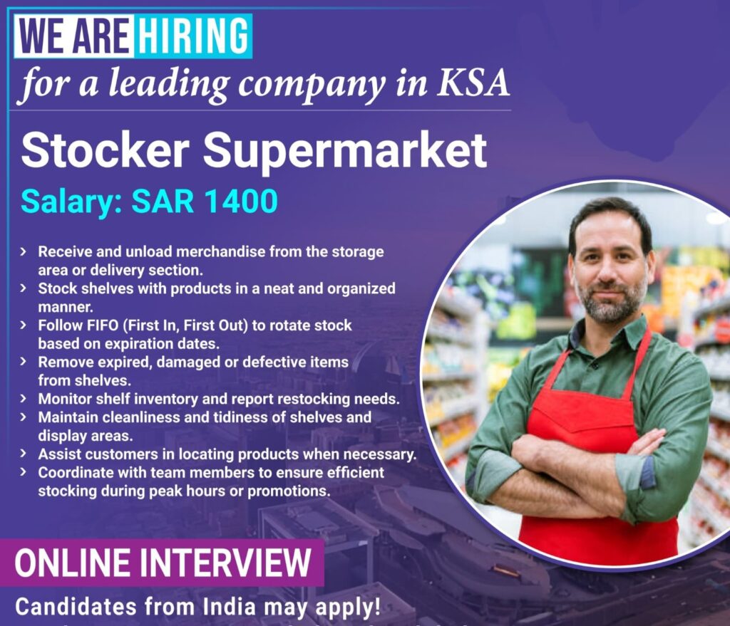 Stocker Supermarket Wanted for a Leading Company in Saudi Aarabia