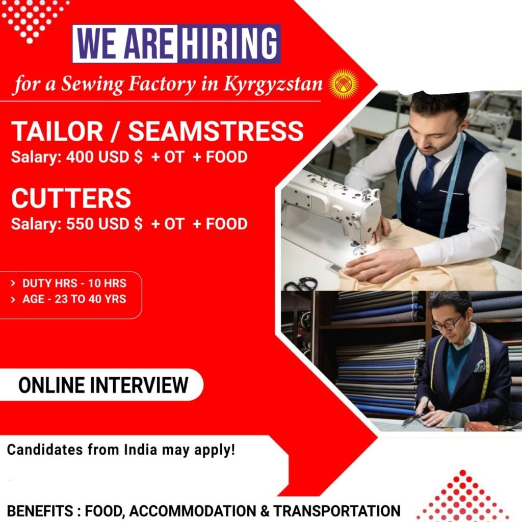 Tailor/ Seamstress/Cutters Wanted for Kyrgyzstan
