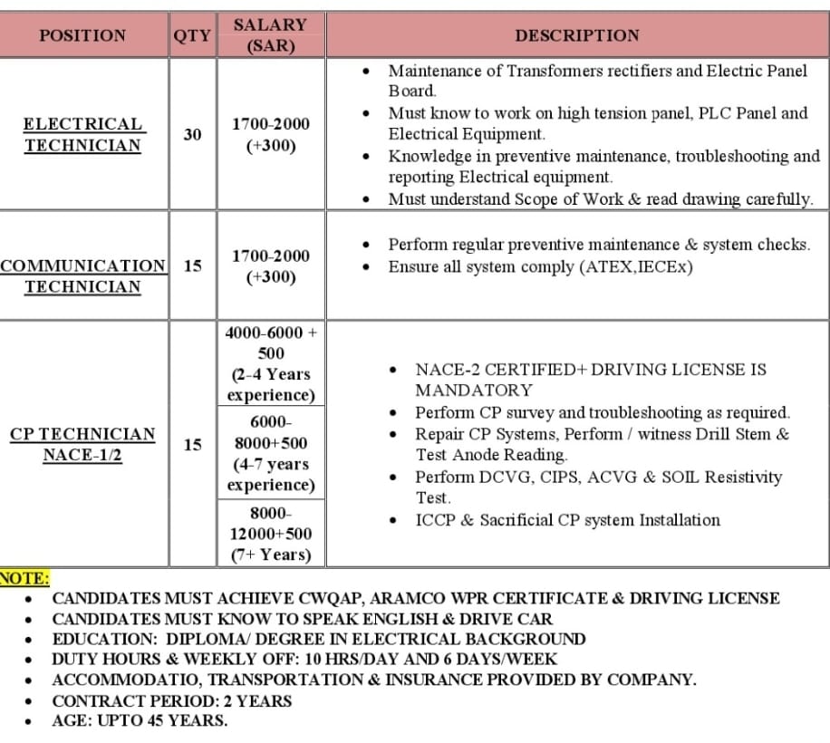 Technicians Wanted For Saudi Arabia