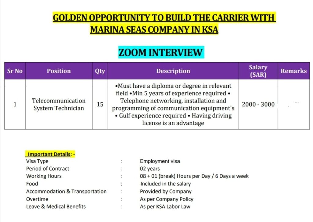Telecommunication System Technician Wanted For Saudi Arabia