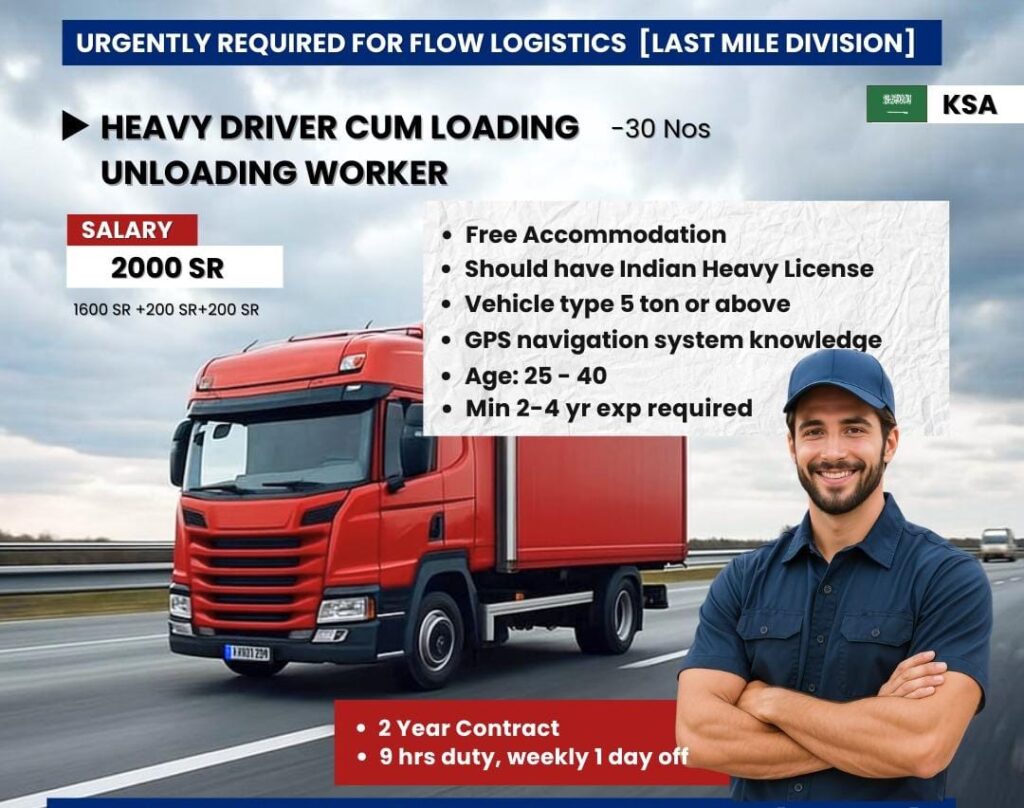 Urgently Required for Flow Logistics (Last Mile Division) In Saudi Arabia